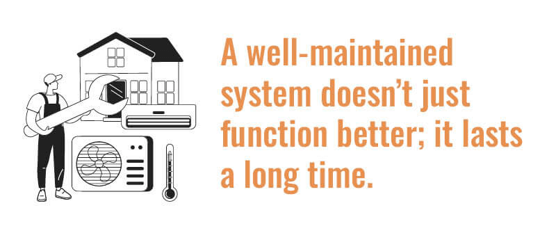 The lifespan of your air conditioning system largely depends on several factors, including the make and model, how often it’s used, and how well it’s been maintained. Generally, central air conditioning systems in Central Indiana are expected to last between 10 to 15 years under optimal conditions. This typical lifespan is based on regular usage and consistent AC maintenance, which helps extend its operational period.