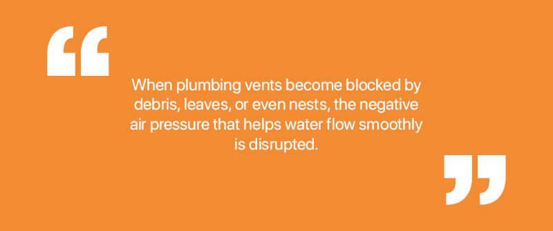 Plumbing vent pipes play a crucial role in maintaining proper air pressure within your plumbing lines. They allow sewer gases to escape and fresh air to enter, balancing the system. When these vents become blocked by debris, leaves, or even nests, most modern vents are equipped with a protective cover to prevent such blockages and maintain proper airflow. The negative air pressure that helps water flow smoothly is disrupted. This blockage forces air to escape through the nearest available outlet—often your toilet—causing it to gurgle.